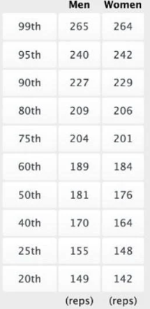 Tabla de percentiles mundiales basado en repeticiones